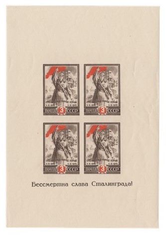 1945 г. 2-я годовщина разгрома немецко-фашистских войск под Сталинградом (2 февраля 1943 г.) Почтовый блок