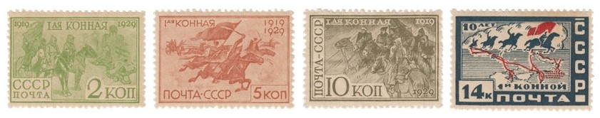 1930 г. 10-летие Первой конной армии. Разновидность-сдвиг красного цвета в правой марке.#1633